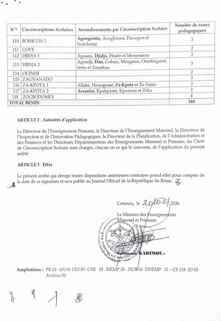 Avec 118 circonscriptions scolaires désormais opérationnelles et 344 zones pédagogiques réparties sur le territoire national, le Bénin confirme sa dynamique de modernisation de l’administration éducative. Cette réforme s’inscrit dans la politique globale d’amélioration de la qualité de l’enseignement et de renforcement des performances du secteur éducatif.